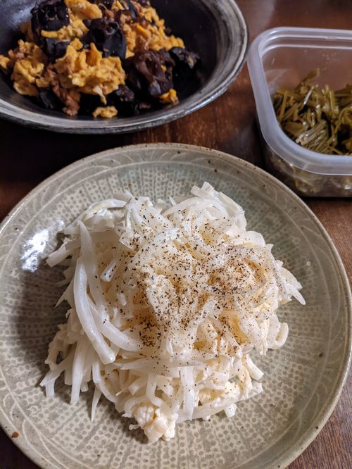 私のひとつ空いた隣の席にいたお姉さんも大分待っている風で、食事がつくやいなやものすごい勢いで平らげて足早に会計していったのが印象的だったのですが、それは今日だけたまたまだと思いたい…。