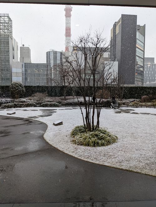 歌舞伎座タワーの庭園も雪化粧。寿月堂には、この景色がよく見える窓際の席もあるようなのですが、今回は完全インドアのカウンターに座ったので、今度は窓際に行ってみるかなぁ(でも、マダムが多そうでちょっと緊張しそう)。