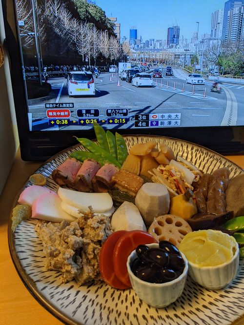 おせちを食べて飲んでうたた寝して、目が覚めたら箱根駅伝も終盤だった。ぼんやりとテレビを見ながら、まだおせち。