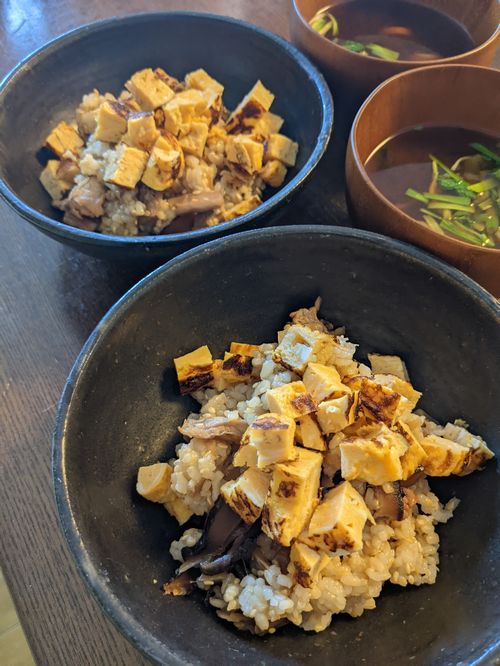 昨日と同じく混ぜご飯。錦糸玉子ではなく、ざっくり玉子焼きを作ってさいの目に切って散らした。食べてみると、やっぱり錦糸玉子の方が良かったなぁと言う気がする。