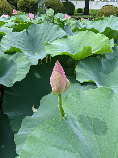 腹ごなしに少し遠くのコンビニまで買い物に出掛け、蓮池のある公園を通ったら、大賀ハスがまだ咲いていた。てっきり7月中に終わってしまうと思っていたのだが、まだこの時期まで咲いているとは。なんだか得した気分だった。