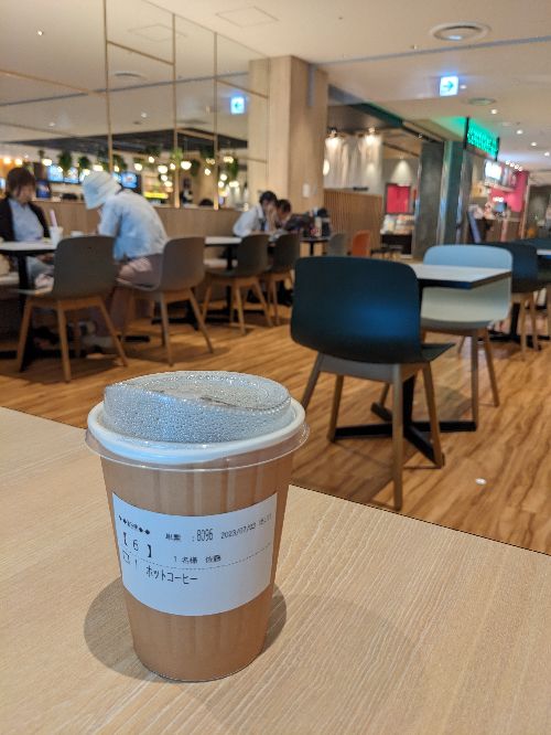 キャベツを食べきってしまったため、晩ご飯用のキャベツを買いに駅前へ。フードコートでコーヒー。平和。