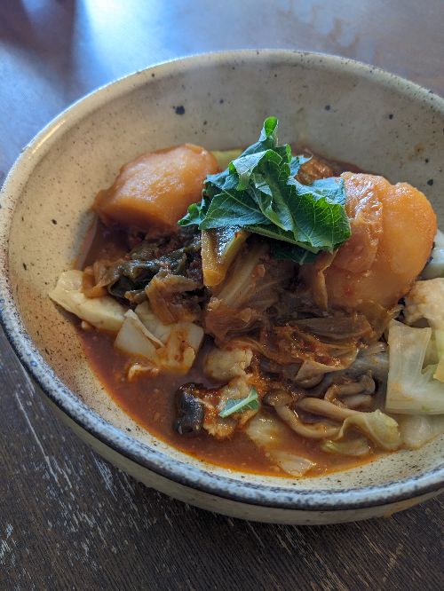 朝はパスしてひとりで昨晩の残りのカムジャタン。ご飯の代わりにざく切りチンキャベツ。