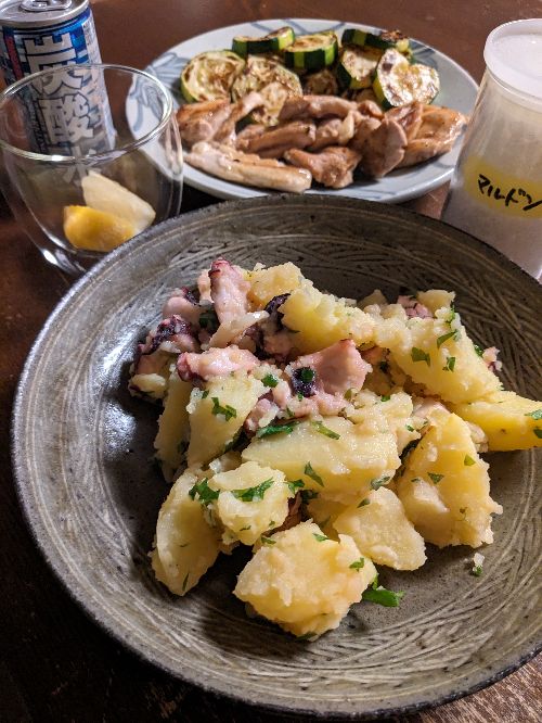 多分、何かの雑誌かWebサイトで見かけて作りたくなったのだろう、ちょうどタコもあるし、とか言って。ただ、やはり、タコはジャガイモと一緒に煮れば堅くなるのは当然で、何だか残念な感じだった記憶がある。タコは好きなのだが、いまいち使いこなせない食材のひとつだ。
