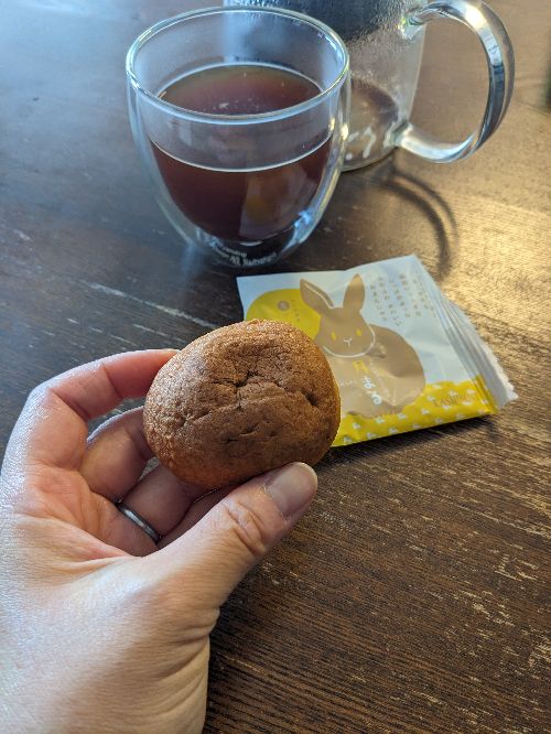 食欲ないっていっていたのは、あれは何だったのか…というくらい、また11時頃に空腹感が襲ってきたので、旅先で買い求めたお菓子の中で一番カロリーの低いもの(果子乃季の「月まる」)を食べる。洋菓子テイストの温泉饅頭という感じで、意外とおいしい。