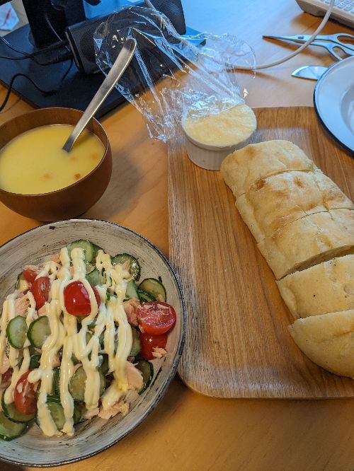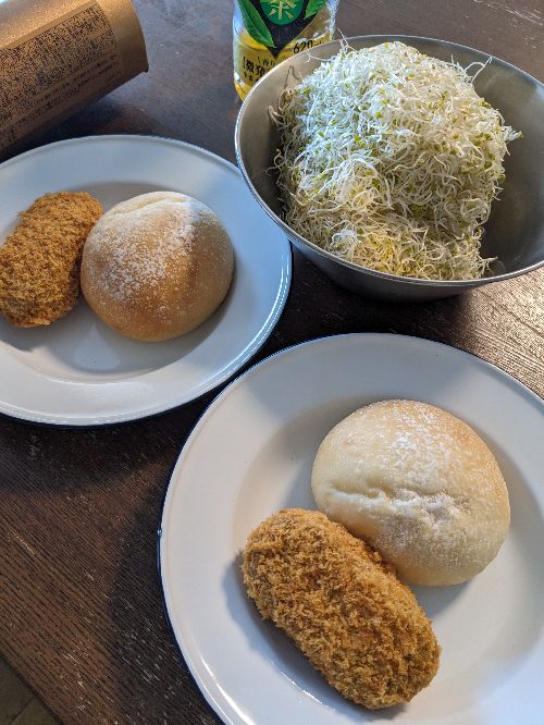 駅構内にあるサンエトワールのイートインで朝ごはん。たまごロールとチョコクロワッサン、夫はあんパン。時刻は9時近かったが、意外とサラリーマンが多く、特に近隣にビジネス街があるわけではないようなのにと、少し不思議な感じがした。