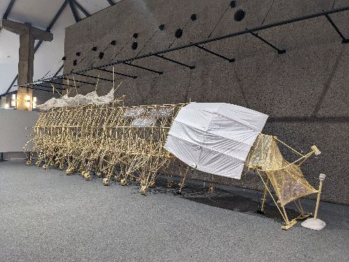 今日のお目当ては、千葉県立美術館で開催中のテオ・ヤンセン展です。2021年に山梨県立美術館で開催された同展を見に行っていますが、また私が電車で行ける範囲のところで開催された! ということで、再びはせ参じたのでした。本当は3週間ほど前に行く予定だったのですが、その日は雨ということでスキップし、改めて調整してこの日に。11月とは思えない暖かさ(一応ダウンコート着ましたけど、やっぱりいらなかった)、そして好天で、やはり天気の良い日に来て良かったと思いました。