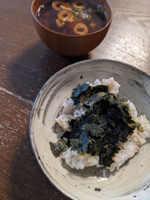 出雲旅行で買った片句わかめをとうとう開封する。ものすごくプリミティブなわかめご飯といった体で、じんわり滋味な味がする。