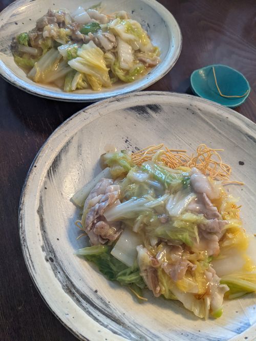 今日は豚バラ肉と一緒に炒めて皿うどんの具に。白菜は皿うどんの具の王様だと思う。