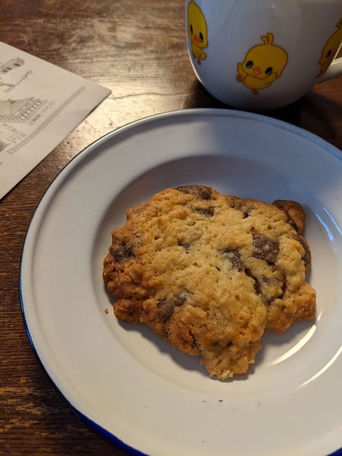 帰宅して、作り置きのチョコチップクッキーを食べる。『洋書のようなシンプルクッキーとケーキの本』にあるレシピなんだけど、やっぱりこのクッキーは本当においしい。