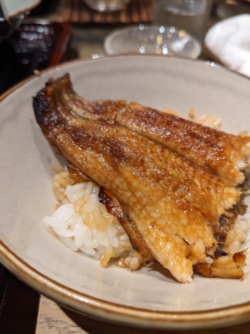 そこから少し取り分けてもらって、私はミニミニ鰻丼で。ここは関西式の蒸さずに焼くだけだし、タレも甘味の少ないすっきりした感じなので、かなりあっさりめ。おいしいです。