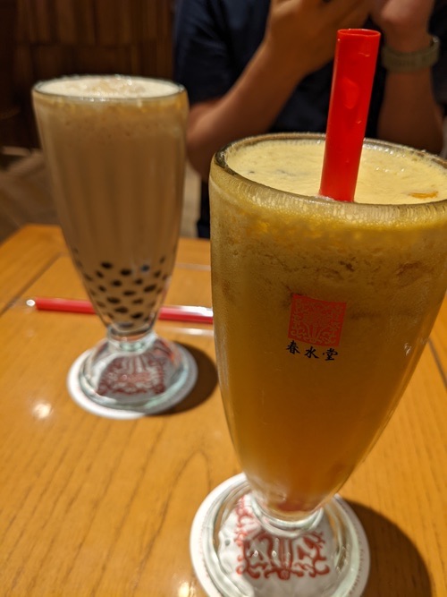 夫は鰻で満腹で、もうあったかいお茶でいいと言っていたのだけど、心変わりして、タピオカ鉄観音ミルクティー。私は愛玉マンゴージャスミンティー。さっぱりしておいしかった。