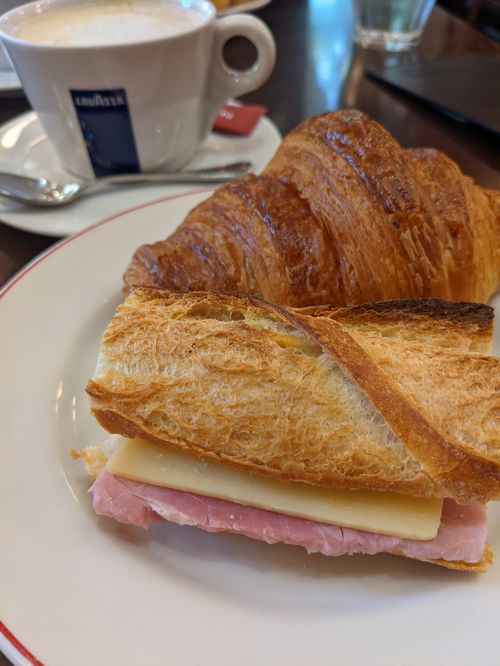 クロワッサンを食べるといつも思うが、フランス人はこんなバリバリに割れるし、飛び散るし、指がギトつく食べ物を、どんな風にしてうまいこと食べているのかと。人前で食べるには、ケンタッキーよりも難易度高いよ、と思う。