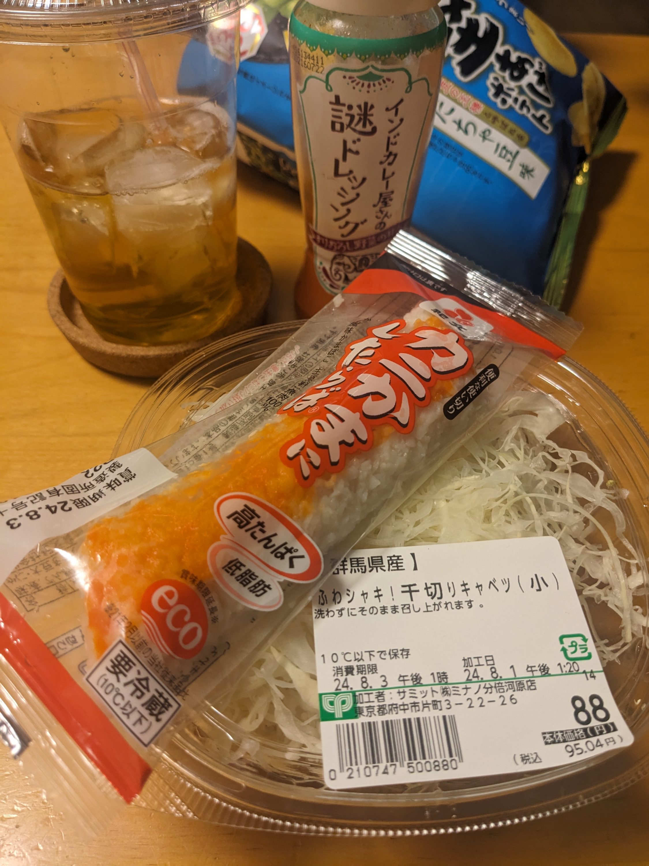 タレは、ケチャップ、レモン汁、タバスコを混ぜたものを作ったが、よく考えたら、スイートチリソースでええやんと、後から気付いて出したが、実際、こっちの方が良く合った。