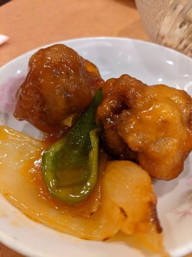 酢豚は、べったり甘酸っぱい、もうなんていうか、酢豚! って感じの酢豚だったんですが、妙においしかったです。お肉の衣が、ドーナツみたいな感じで(夫はアメリカンドッグと言っていたが、さもありなん)、分厚くて、サクサクで、食べ応えがあるのに軽い。なんか好きな味でした。