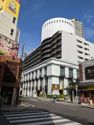 今日は十五夜なので、白玉粉もあるしお団子でも作ろうかなと思っていたのだけど、夫が急に「ローズホテルの素泊まりが安いから泊まりに行かない? 月餅買えるよ」というので、その提案に乗ってみる。みなとみらい線の山下公園口を出て、中華街東門をくぐってすぐのY字路を右に行くと、なんかちょっとゴツゴツ感が80年代風というか、都内では見ないデコラティブな大きい建物があって、1階に重慶飯店が入っている大きな建物。それがローズホテル。