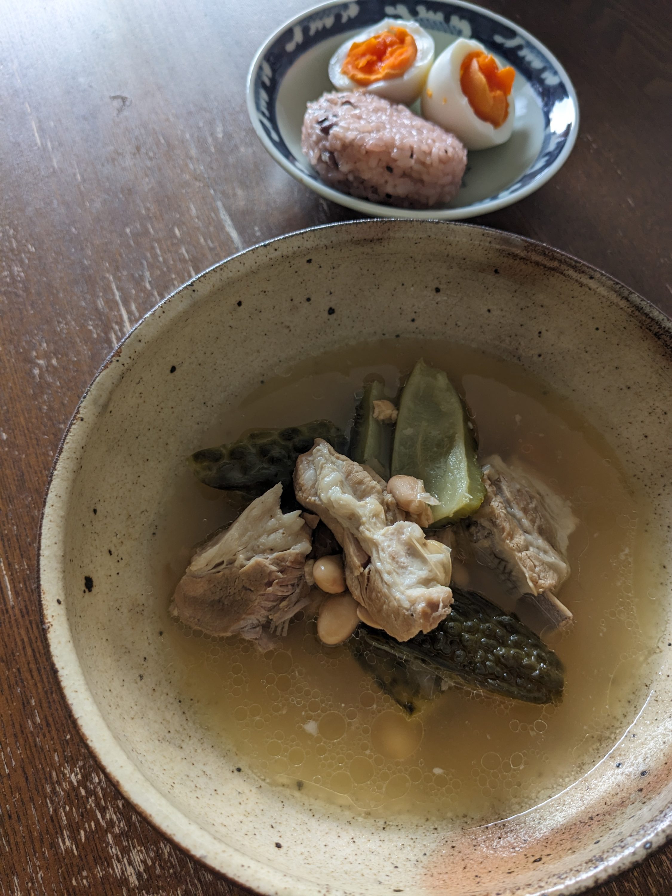 起きてから1時間ほど立ってようやく空腹を感じてきたので、残り物で朝ごはん。夫はさっさと起きて、いつもの朝食を食べ、昨晩何もせずシンクに置きっぱなしにしていた洗いものを全部片付けてくれていた。