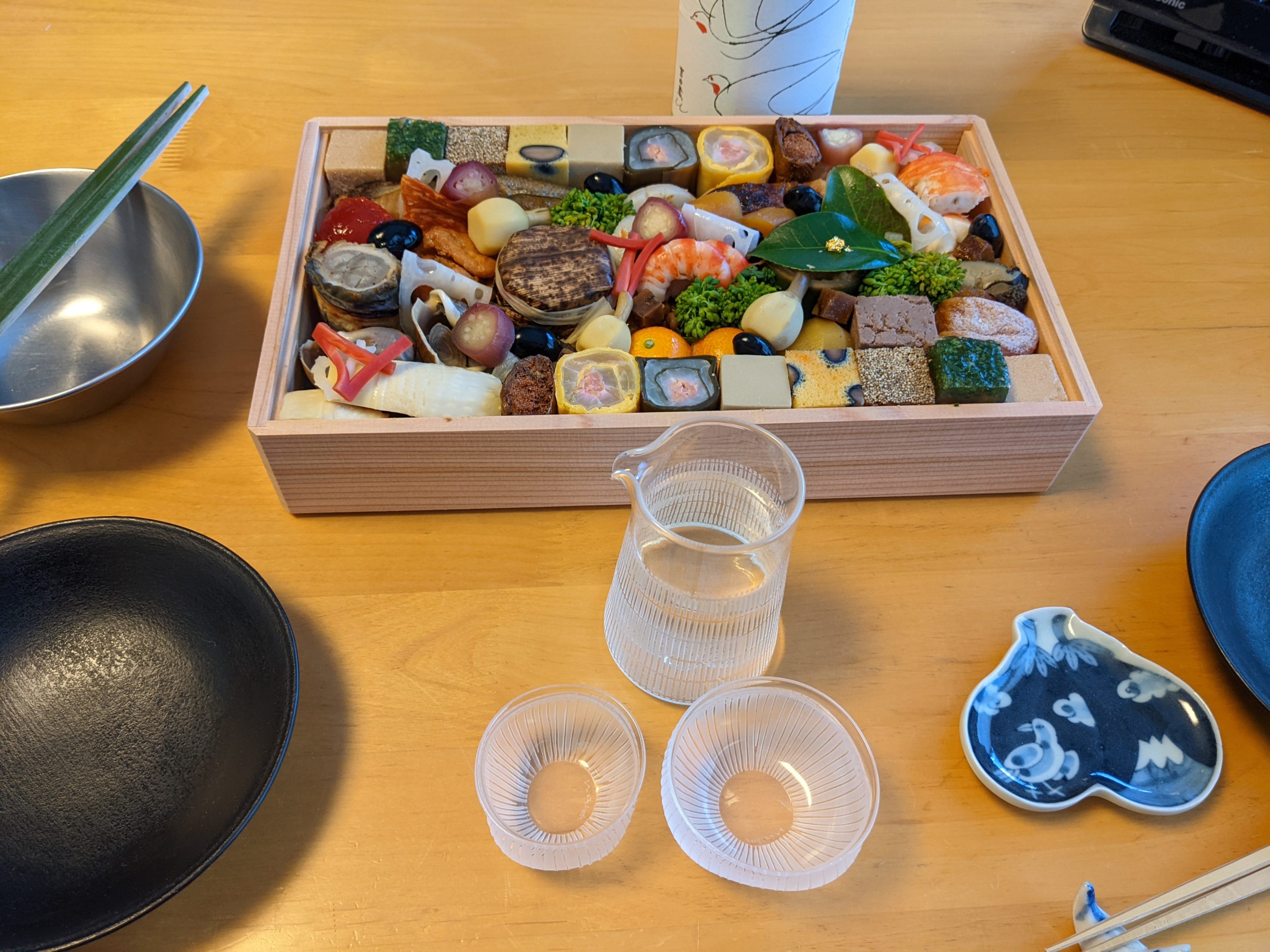 毎年、一応、お正月っぽい手ぬぐいや折敷、器、箸と色々用意していましたが、もう今年は箸を新調した以外はもういつもの器で(一応、お正月っぽいものをチョイスしましたが)。お雑煮を作るのもパス。ただ、色々作業をそぎ落としたせいで、却って、やることがなさ過ぎて、ちょっと戸惑ってしまった。おせちの箱を開けて、酒を出すだけでいいって、なんて楽チンなのか。