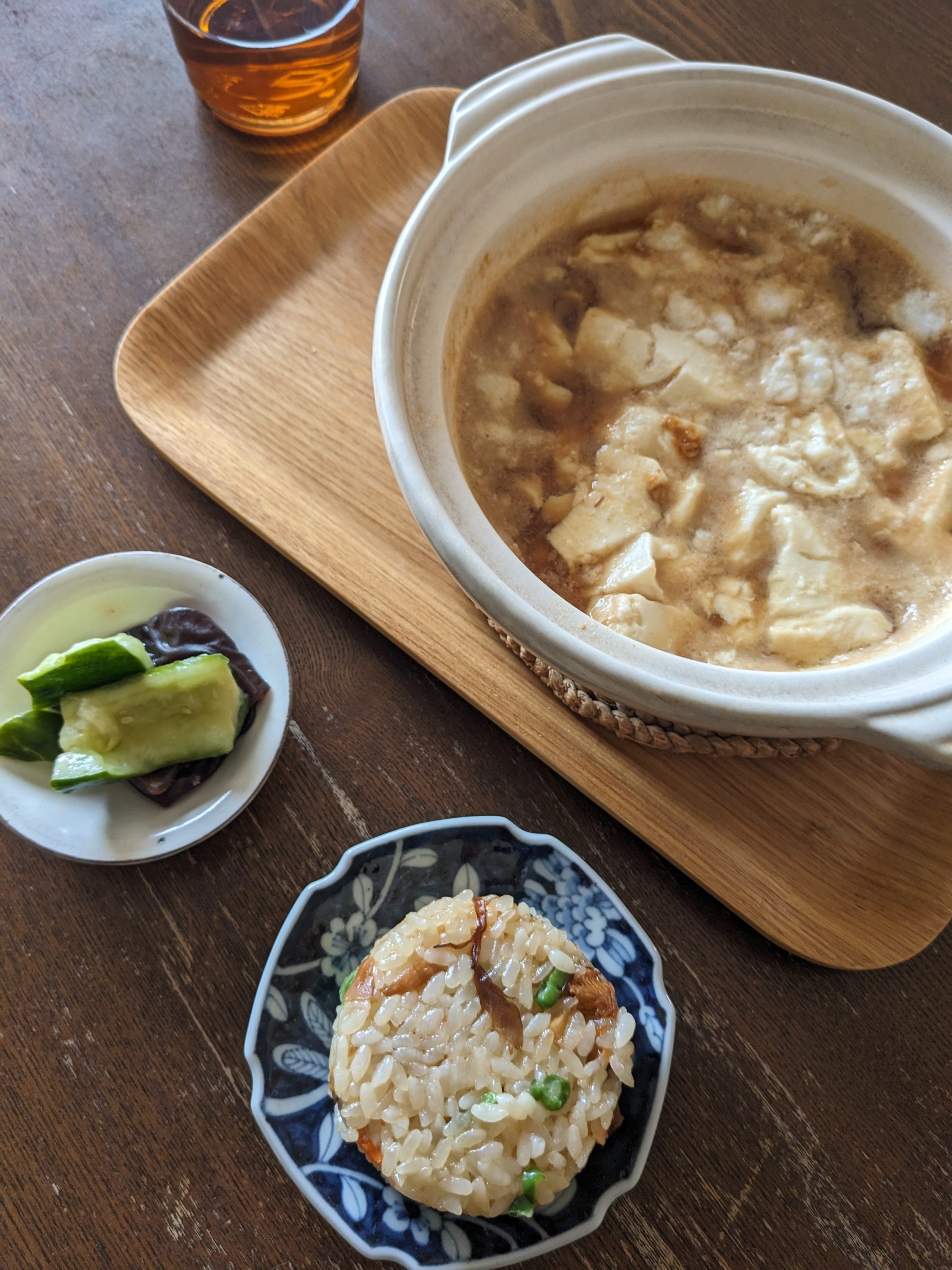 今日もいい天気だなーと思いながら、小さい土鍋に作り置きのだしをはり、昨日の残りの三之助豆腐、玉子を割り入れて火にかけ、沸いたら味噌を溶く。三之助豆腐が柔らかすぎて味噌を溶くごとにどんどん崩れていき、なんとも残念な見た目になってしまった。味はよいのに。