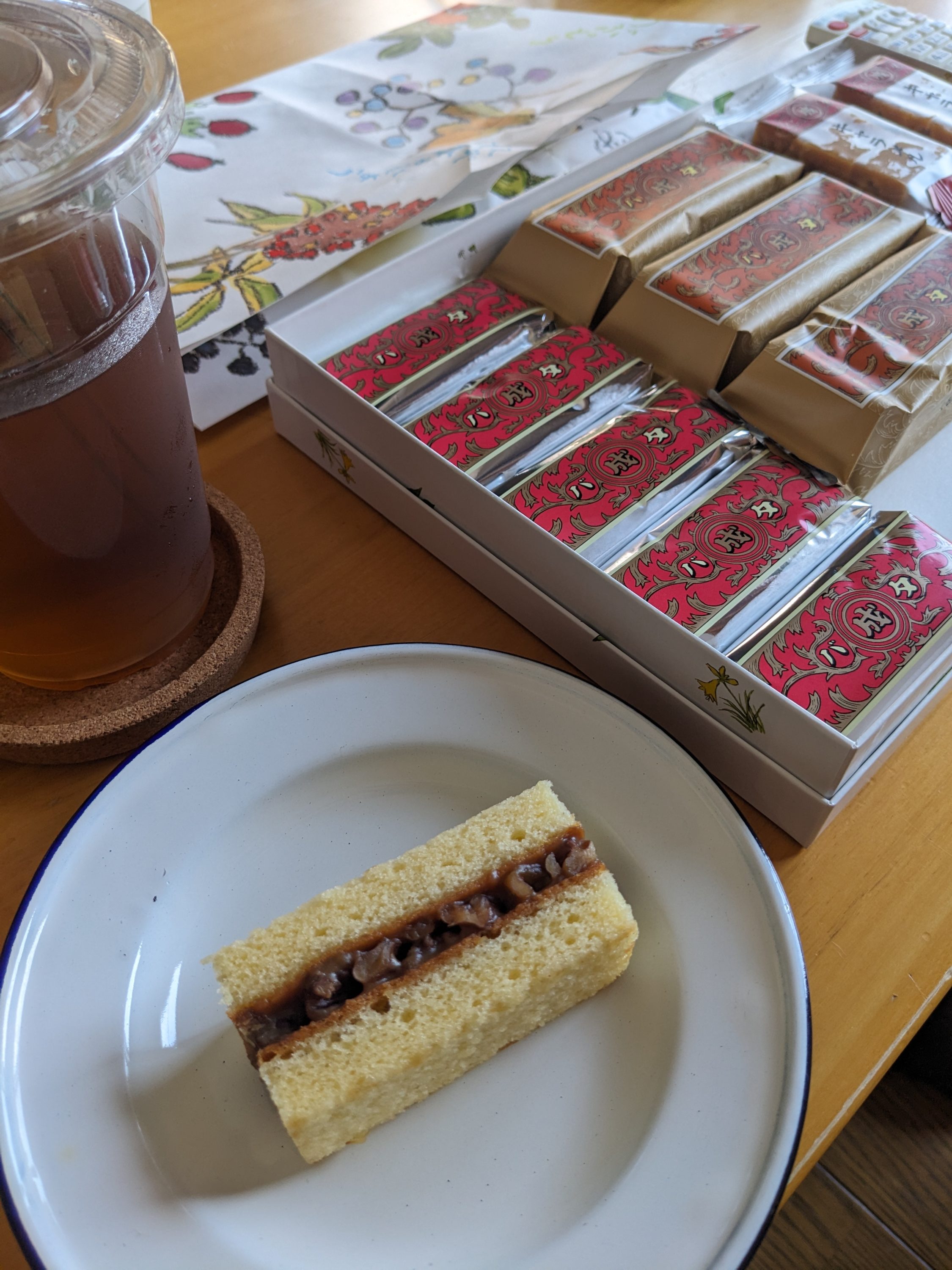 食後に六花亭の詰め合わせから、マルセイバターケーキ(くるみ)とマルセイバタークッキー。昨日封を開けたはずだったが、もう、数個のキャラメルを残して、これで最後。2人だと早い。